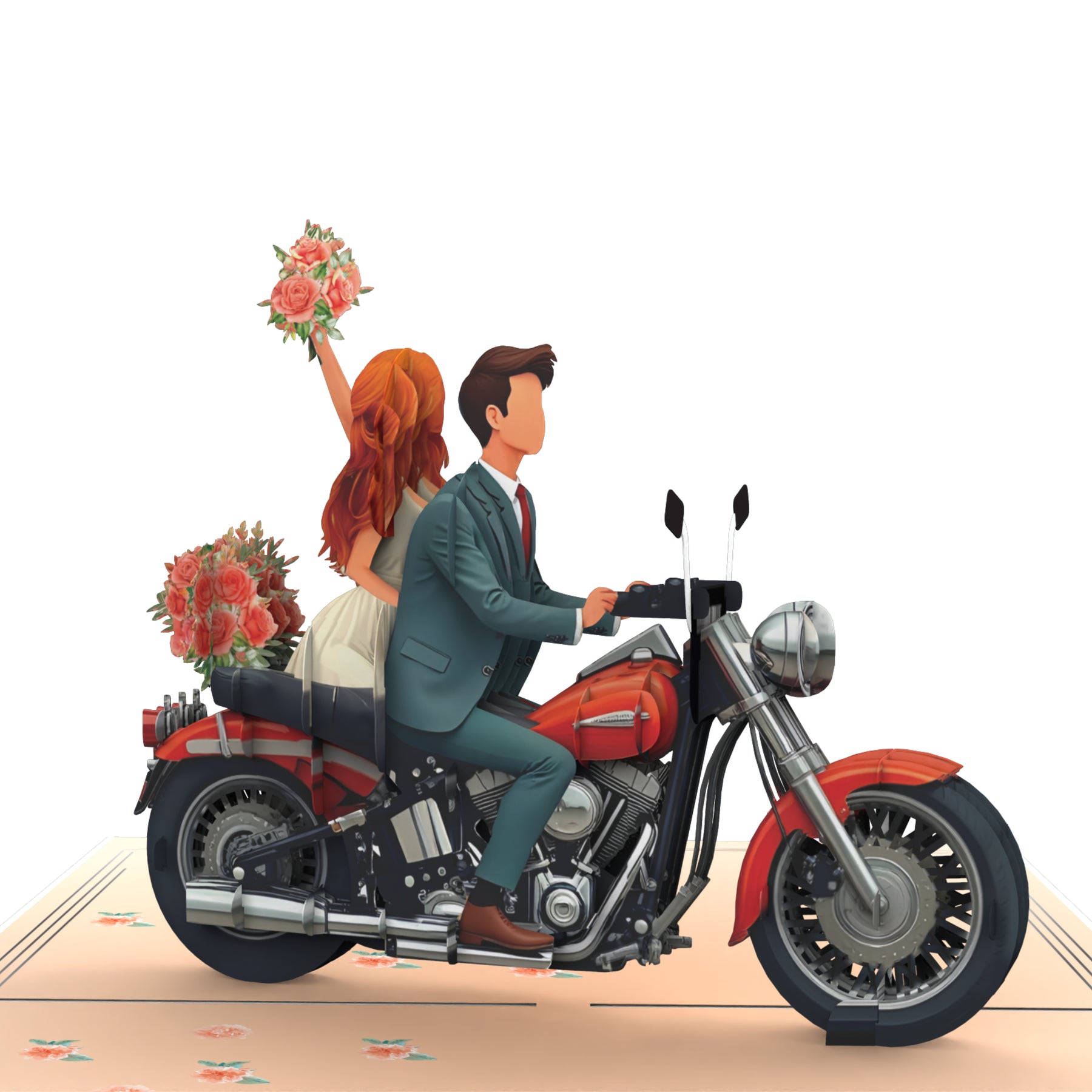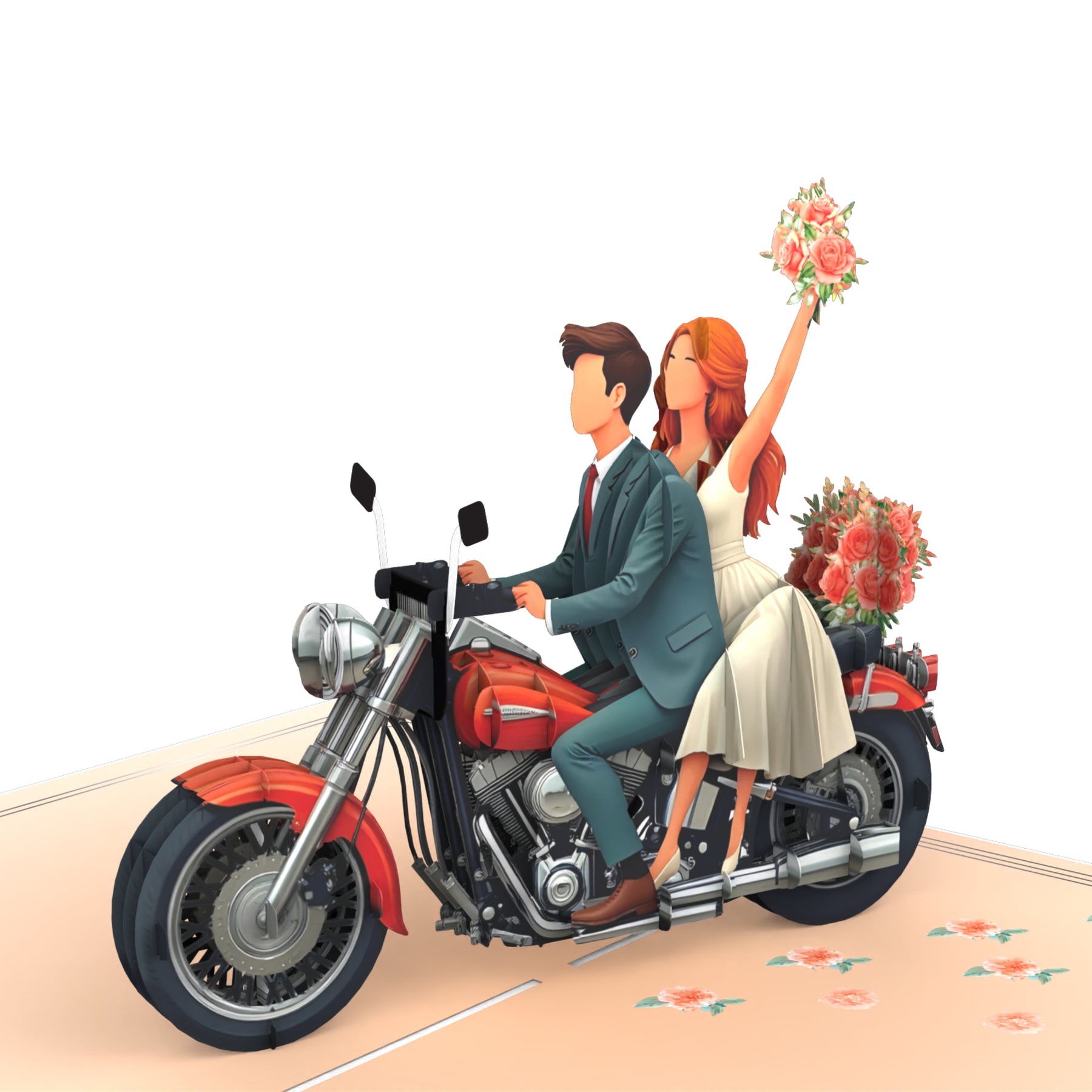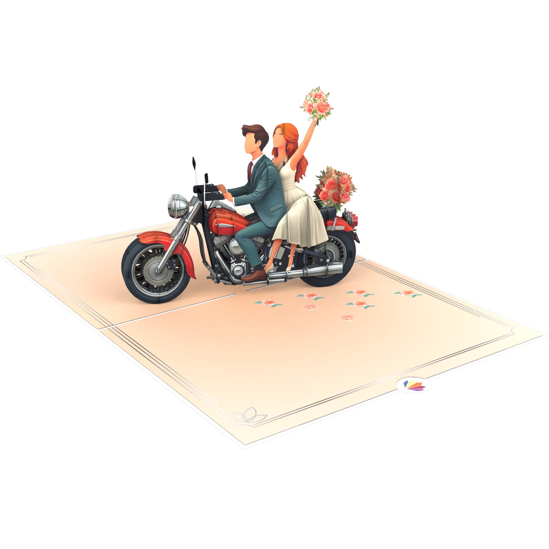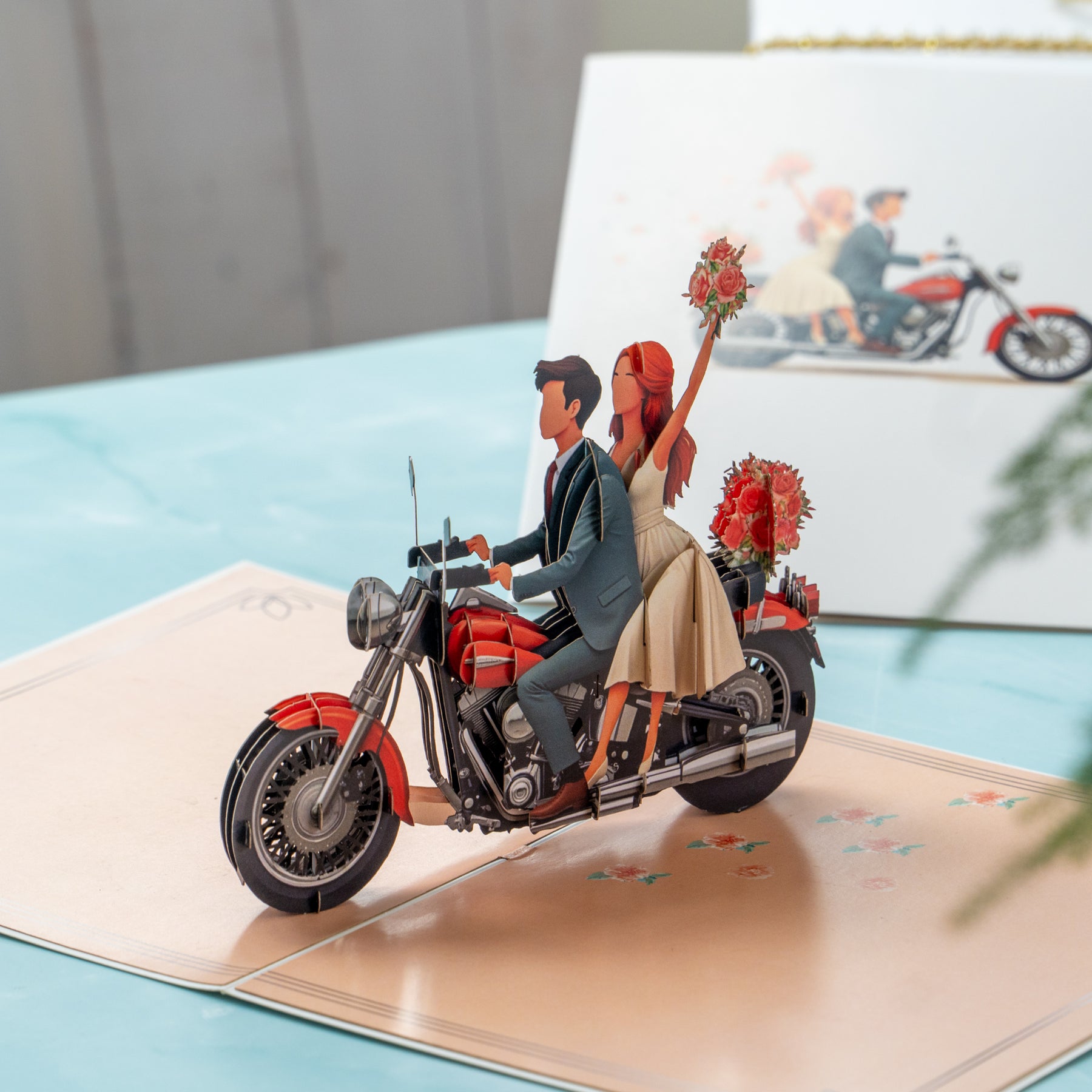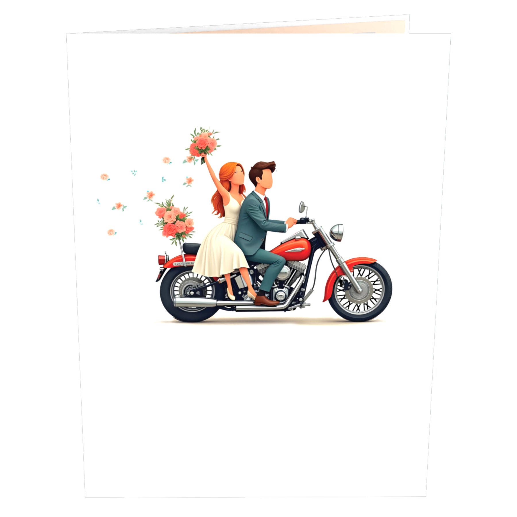 Außergewöhnliches Hochzeitsgeschenk mit Wow-Effekt: Diese liebevoll gestaltete Klappkarte begeistert mit einem romantischen Brautpaar auf einem Motorrad – ideal für alle, die dem frisch vermählten Paar ein unvergessliches Geschenk überreichen möchten.